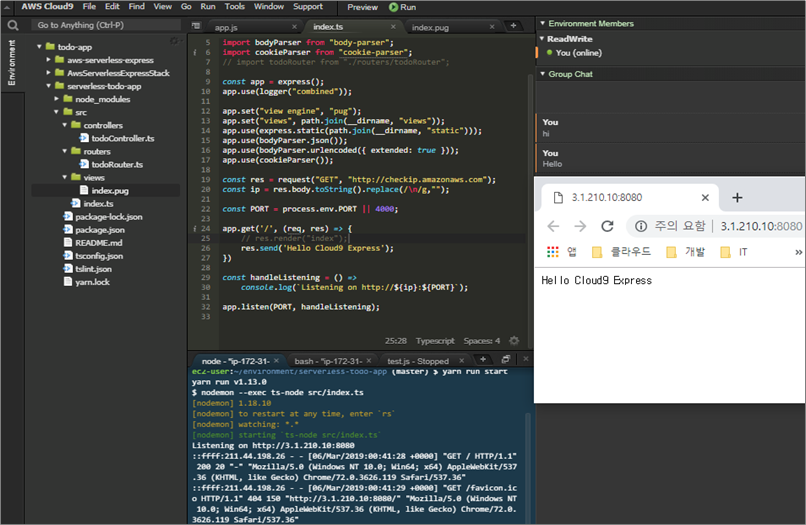 혹시나 C9이 구동되고 있는 EC2를 정지 시켰다면 C9 환경은 다시 살릴 수가 없으니 꼭 주의해야 한다. 삭제가 아닌 정지라도 구성한 C9 환경이 날아가버리니 주의해야 한다! (아흑...)