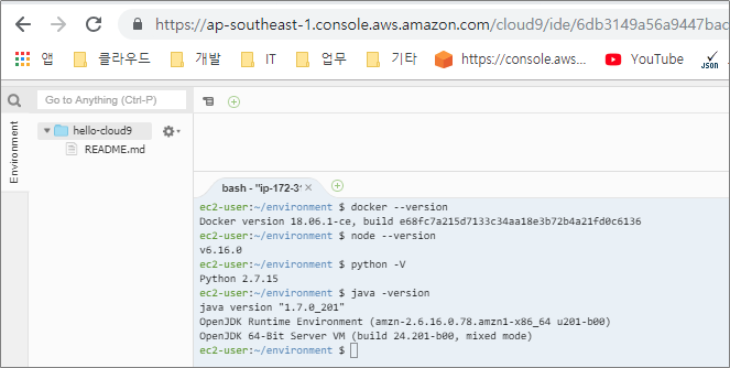 Cloud9은 웹기반 IDE로 EC2 Docker 기반으로 구성.