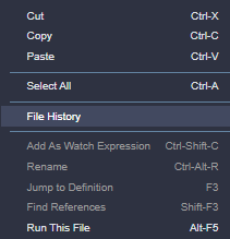 또한 File History 기능을 제공한다. 소스 파일 저장 시 자동적으로 버전이 기록된다.