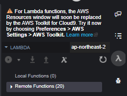 또한 Lambda 배포용으로 C9을 쓴다면 미리 C9을 통해 Lambda Function을 생성하고, C9 내의 Lambda 기능을 통해 디버깅 해야 한다.