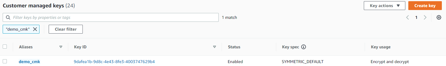 AWS KMS Console에 아래와 같이 CMK가 생성되는 것을 확인