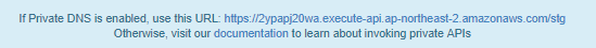 순서가 좀 바뀌었는데... API Gateway 생성 후 보여지는 URL의 경우 DNS 질의는 VPC 내부 EC2, Lambda 등의 Resource 에서만 가능하다. 이 URL의 경우 요청 시 host header가 필요하지 않다.