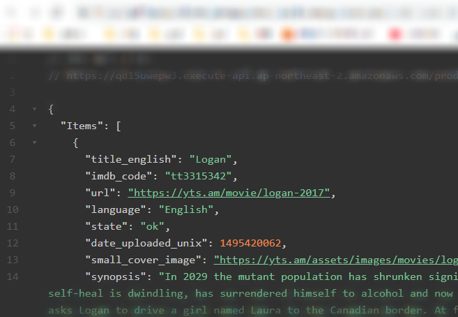 아래 예시는 API Gateway -> Lambda -> DynamoDB(데이터는 영화 정보)