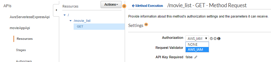 Resource의 Method 항목의 Authorization을 AWS_IAM로 선택