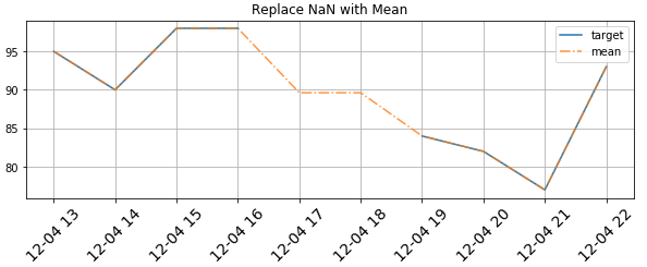fillna(0), fillna(df['Car'].mean()) / df['Car'].interpolate() / fillna(method='ffill') / fillna(method='bfill')