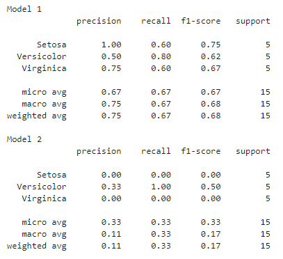 Micro avg: ? / Macro avg: 평균 / Weighted avg: 가중 평균