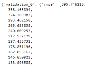 [99] validation_0-rmse:1.49156 validation_1-rmse:3.71637