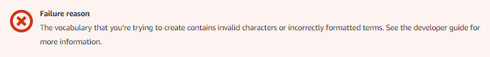custom-vacabulary 포맷에 문제가 있는 것 같은데... 잘 모르겠다. 일단 AWS에 문의해봐야겠다.