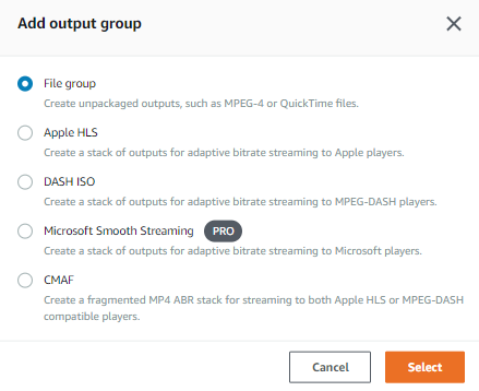 output 파일을 mp4로 만들기 위해서 output group을 File group으로 지정한다.