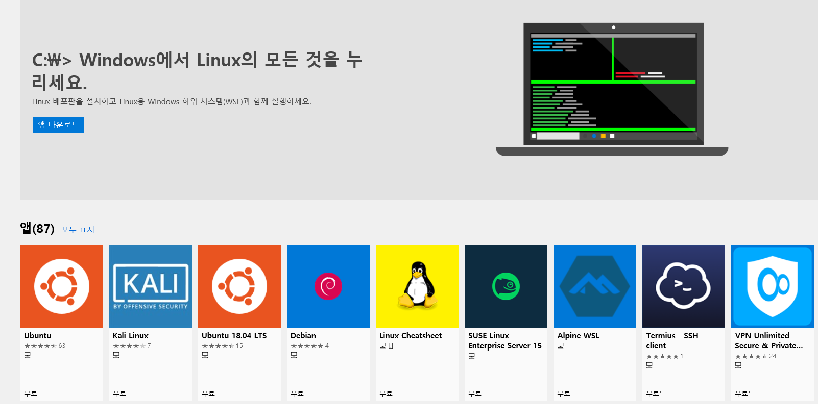 먼저 Microsoft Store에서 Linux를 검색한다.
