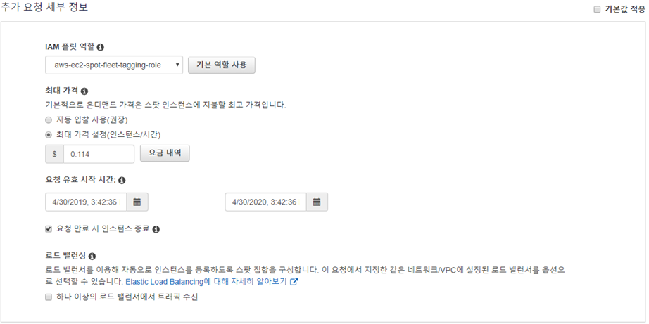 스팟 인스턴스의 최대 가격 지정이 가능하다.