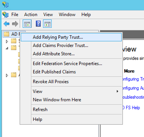 - 팝업 창에서 Add Relying Party Trust를 클릭한다.