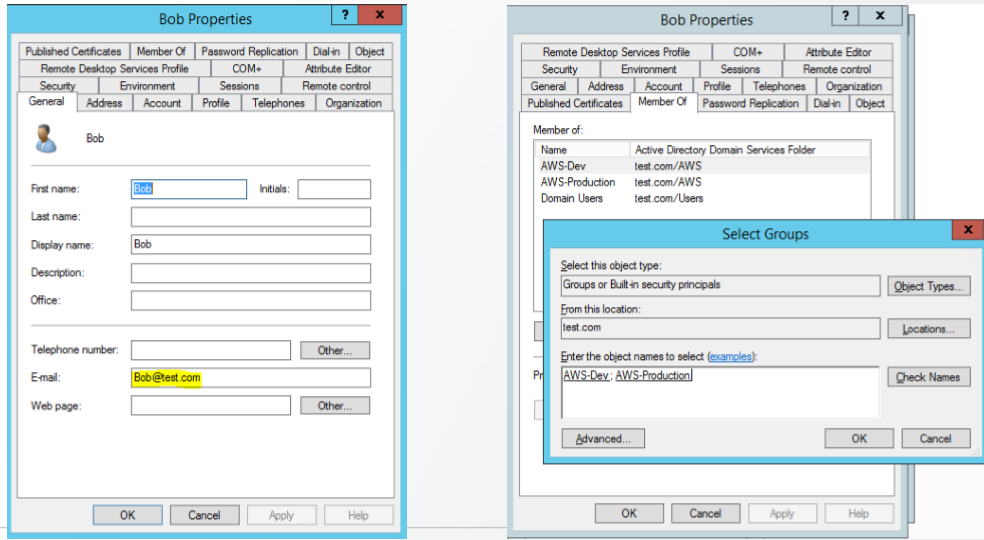 Bob 계정에 미리 생성한 AWS-Dev와 AWS-Production Group에 연결한다. (두 그룹에 대한 설정을 보기 위함)