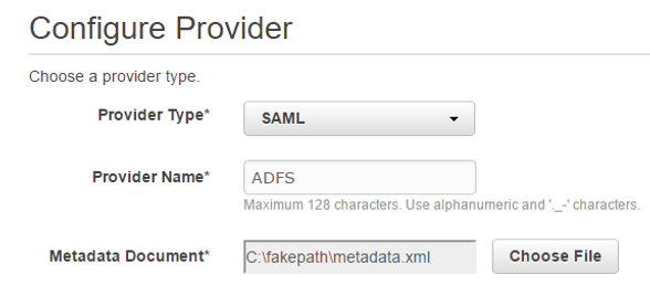 - Metadata Document에는 Choose File을 선택하여 앞서 AD FS 서버에서 다운로드 한 .xml 파일을 선택한다.