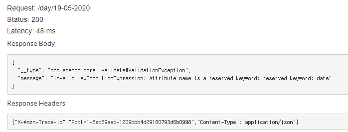 이유는 위 참조 링크와 같이 매핑 테이블 안 KeyConditionExpression에는 DynamoDB의 예약어가 들어갈 수 없기 때문이다.