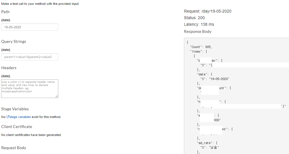그럼 아래와 같이 "https://apigateway.com/day/2020-02.." Param 요청을 통해 데이터를 받아올 수 있다.