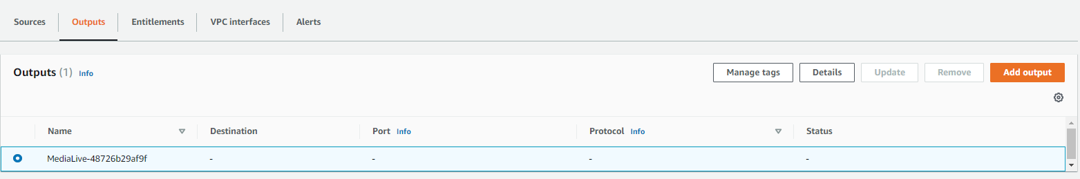 그럼 싱가폴 리전의 미디어커넥트의 아웃풋은 추가할 필요 없이 알아서 아래와 같이 생성되어 있다.