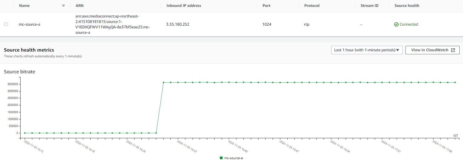 미디어커넥트 모니터링의 경우 CloudWatch를 통해서 확인할 수 있다.