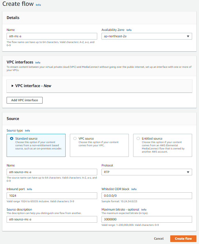 먼저 서울 리전에서 MediaConnect를 생성한다.