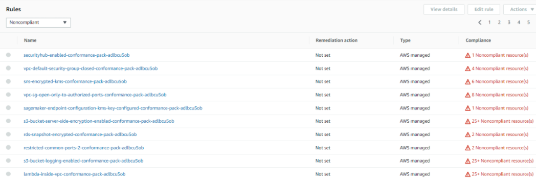 Rule들은 190개가 존재하며, 이미 AWS에서 생성한 Rule들