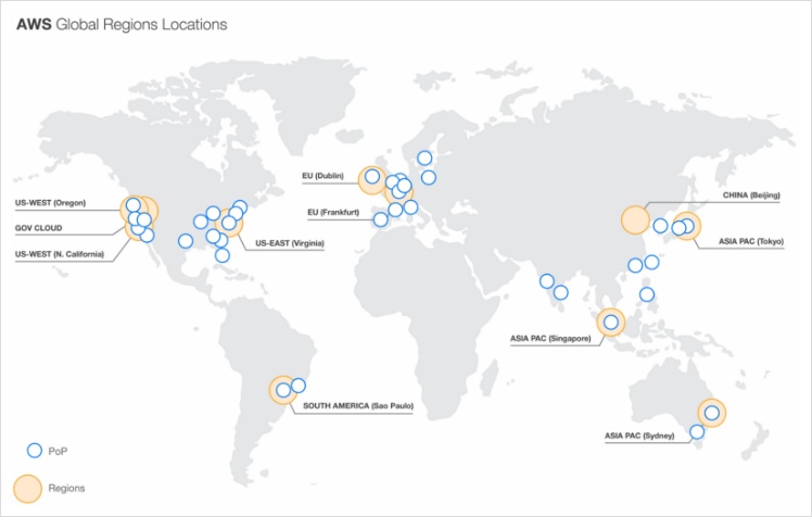 AWS의 경우 대륙별로 9개의 IDC가 있으며, CDN 전용 팜 53개(한국 포함)가 존재 (2016년 미중부 / 한국 / 인도 추가 예정)